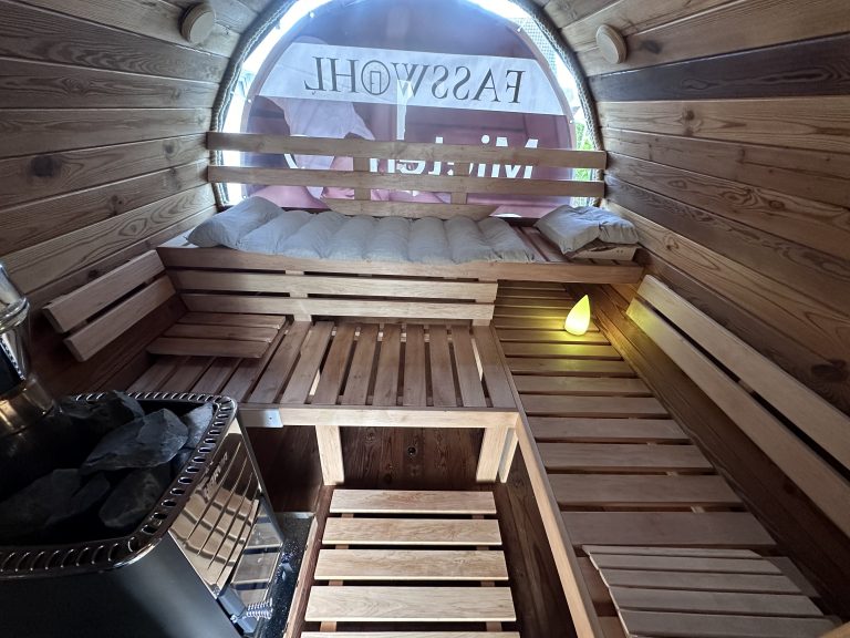 3 Sitzbänke im Dampfraum und Bodenrost aus Erle/Espe